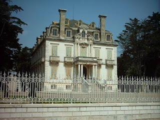É curioso registar que esta rica moradia, de inspiração francesa do princípio do século passado, demorou 20 anos a ficar completa. Sem me deter muito sobre a beleza do palácio, permitam-me que destaque da decoração os trabalhos de António Ramalho, Joaquim Lopes, Dórdio Gomes, António Carneiro, entre outros artistas de renome da época. O primeiro arquiteto, Gaston Landeck, era gaulês.