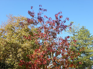 Hoje, no jardim municipal da Figueira da Foz. Encontrei-me com esta árvore que, na sua copa, permite apreciar vários tons.