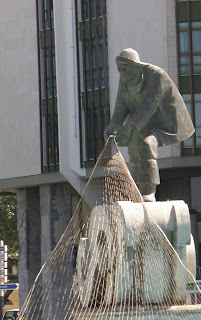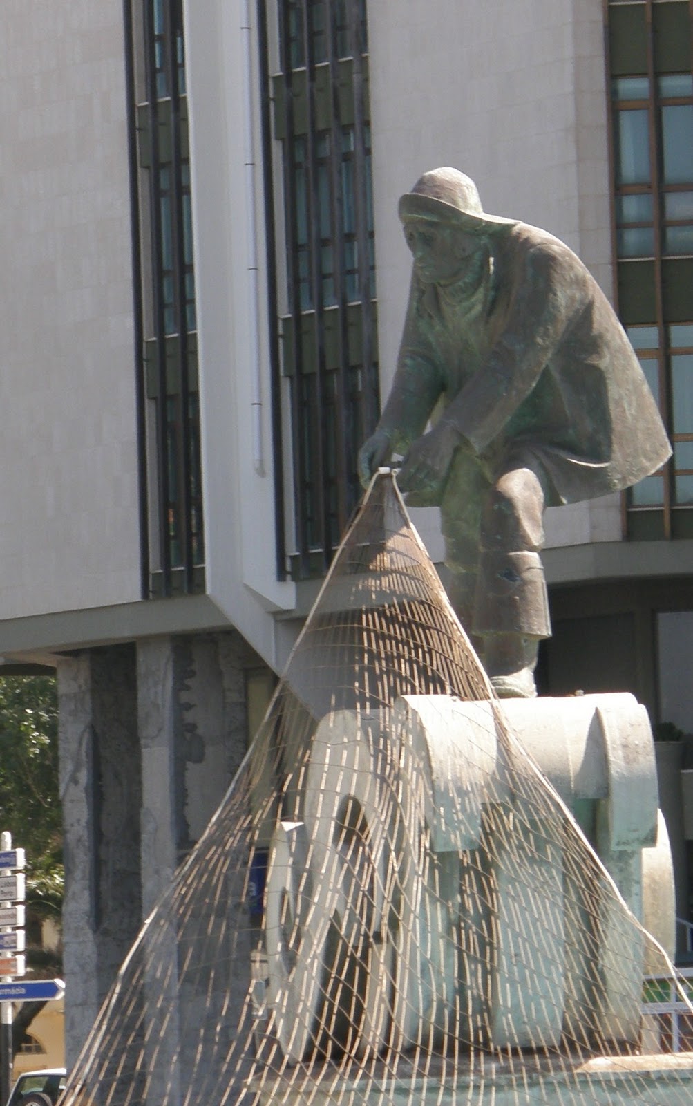 A homenagem ao pescador, na rotunda do mesmo nome, atesta o respeito que há por quem deu o ser a Buarcos. Na crista da onda, o pescador segura a rede, sempre na ânsia de que venha o peixe necessário para o sustento da família. Boa ideia.