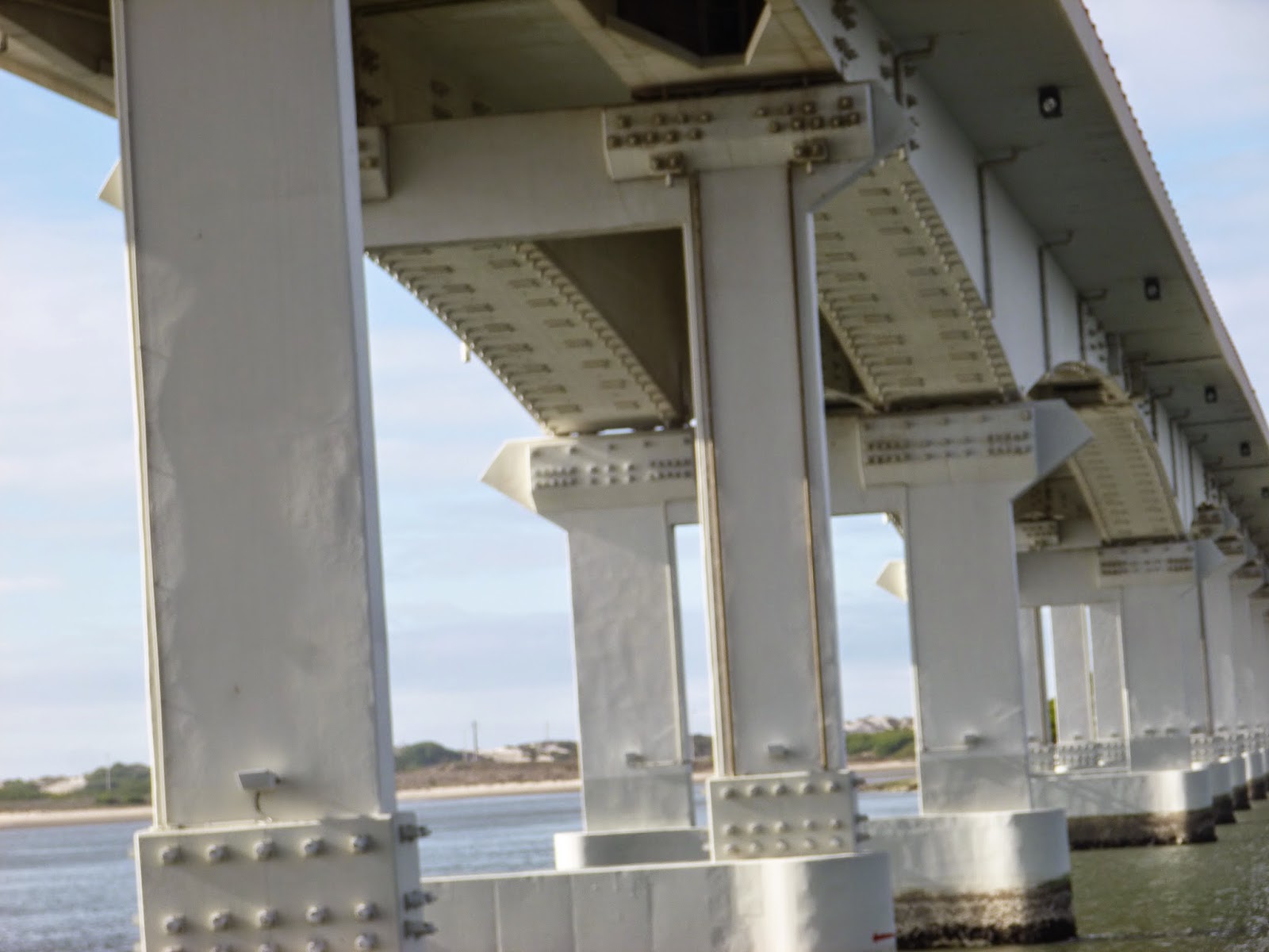 Um dia destes dei-me ao cuidado de ir ver a Ponte da Barra que nos liga às nossas praias. Não ao longe nem por cima, que por ela passam centenas de veículos e pessoas, de noite e de dia. Preferi observá-la da parte inferior para sentir toda a sua capacidade de resistência,