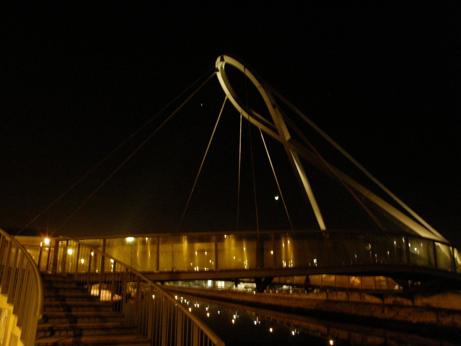 A noite está cheia de luzes e sombras. Num cenário de escuridão, sobressai esta ponte, no Canal de S. Roque, que nos convida a passar. Passei, sim senhor, mas antes fixei-a para a mostrar aos meus amigos.
